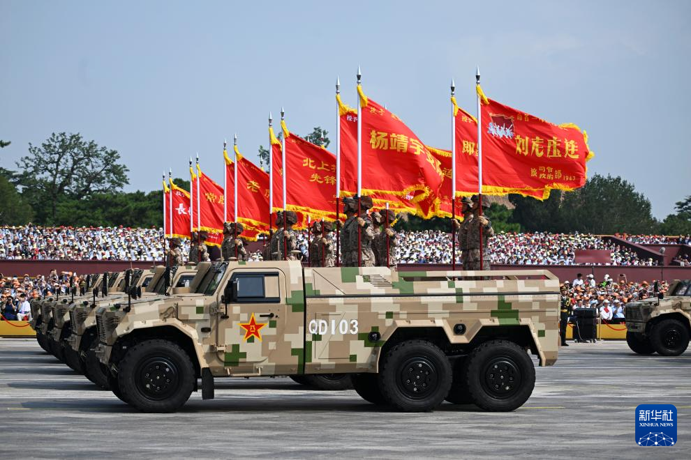 2025年9月3日,天安门广场,战旗猎猎,铁流滚滚。