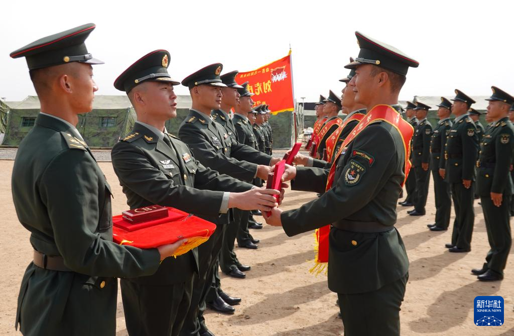 陆军某旅“刘老庄连”举行“新时代刘老庄八十二勇士”颁授仪式(2025年9月14日摄)。新华社发(韩启扬 摄)